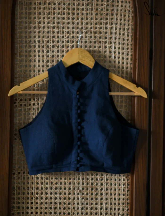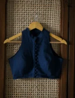 Blue Silk Sleeveless V Neck Benarasi Blouse