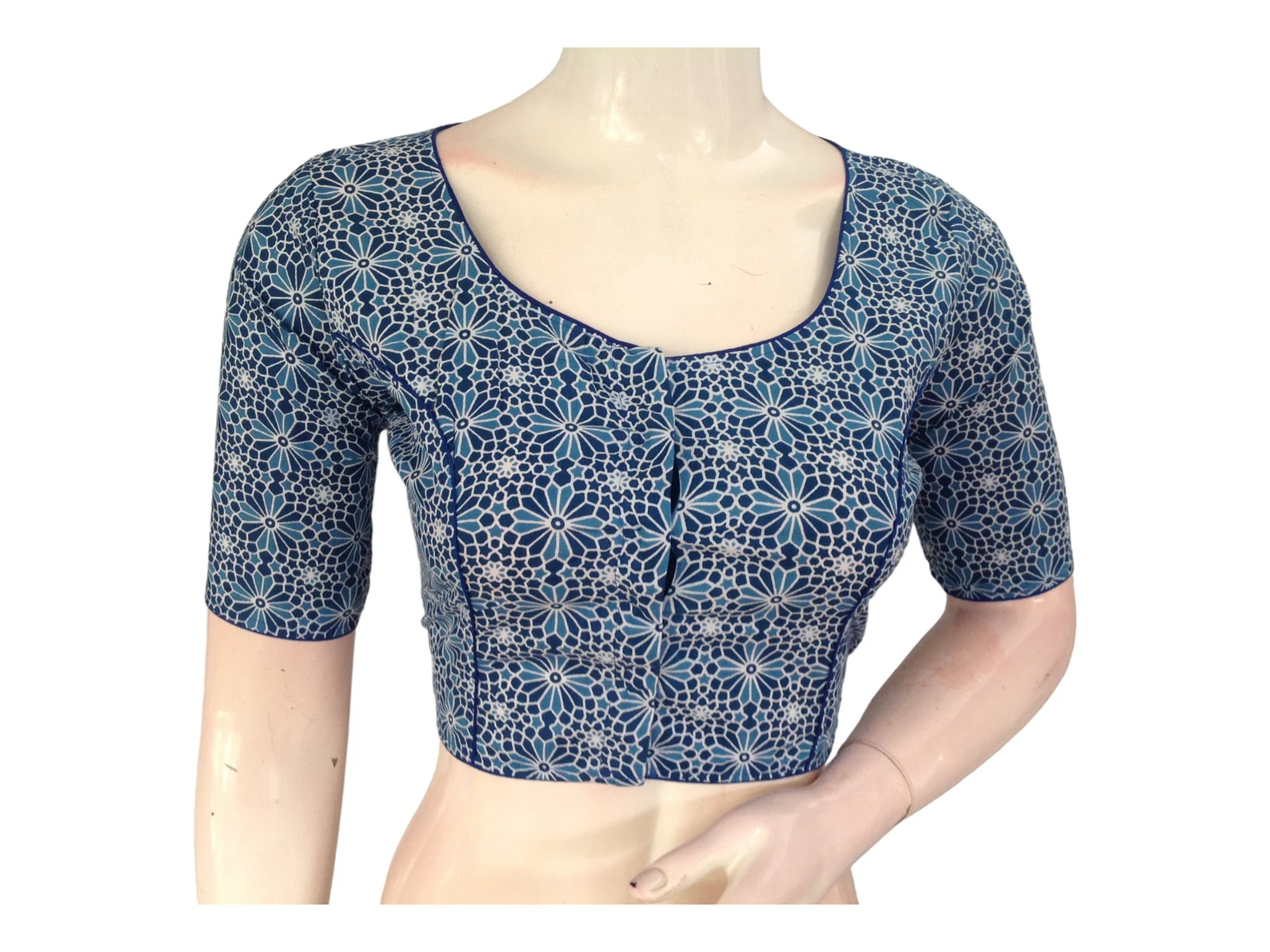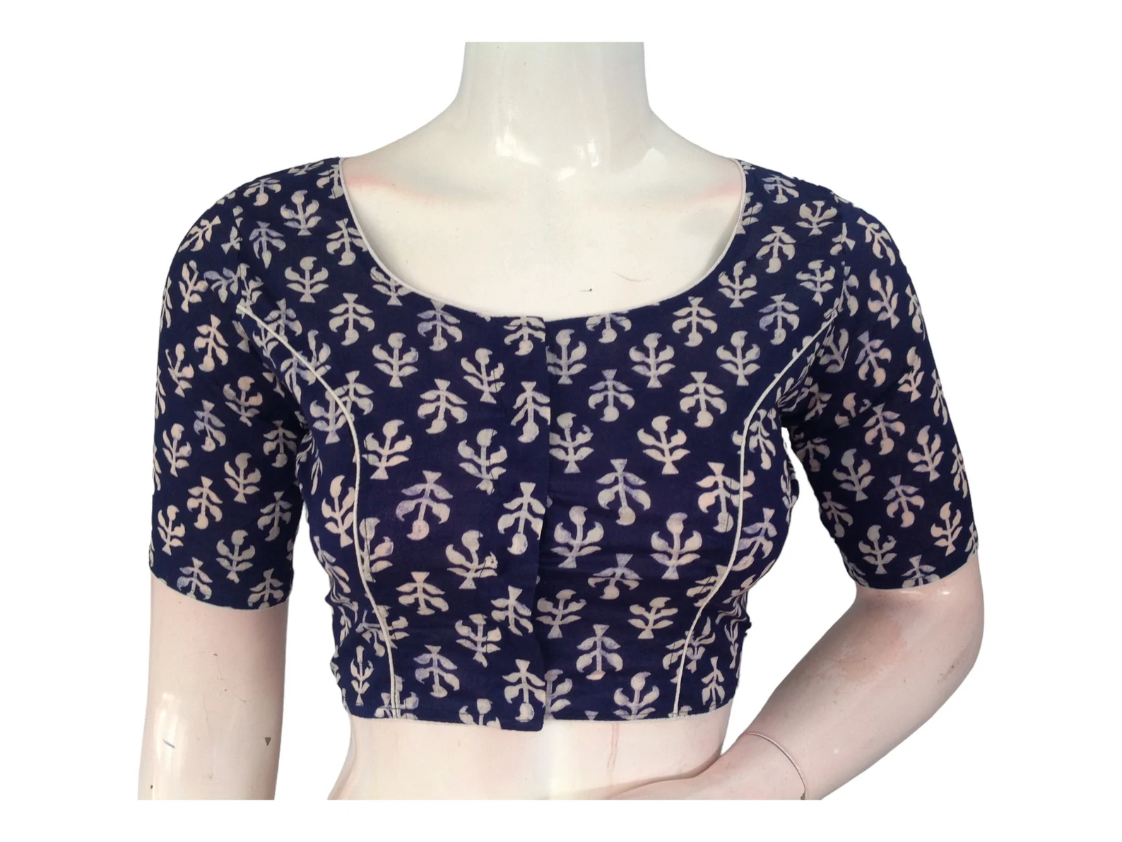Stylish and comfortable high-neck saree blouses in soft cotton fabric. Perfect for any occasion. Trendy Indian fashion made in India, shipped to the USA. * Made Of Cotton fabric Without Lining * Non-Padded * Opens From the Front With a Hook And Eye Fitting BLOUSE MEASUREMENTS: Size: 36, 38,40 Sleeve Length -10 Inches Blouse Length-…