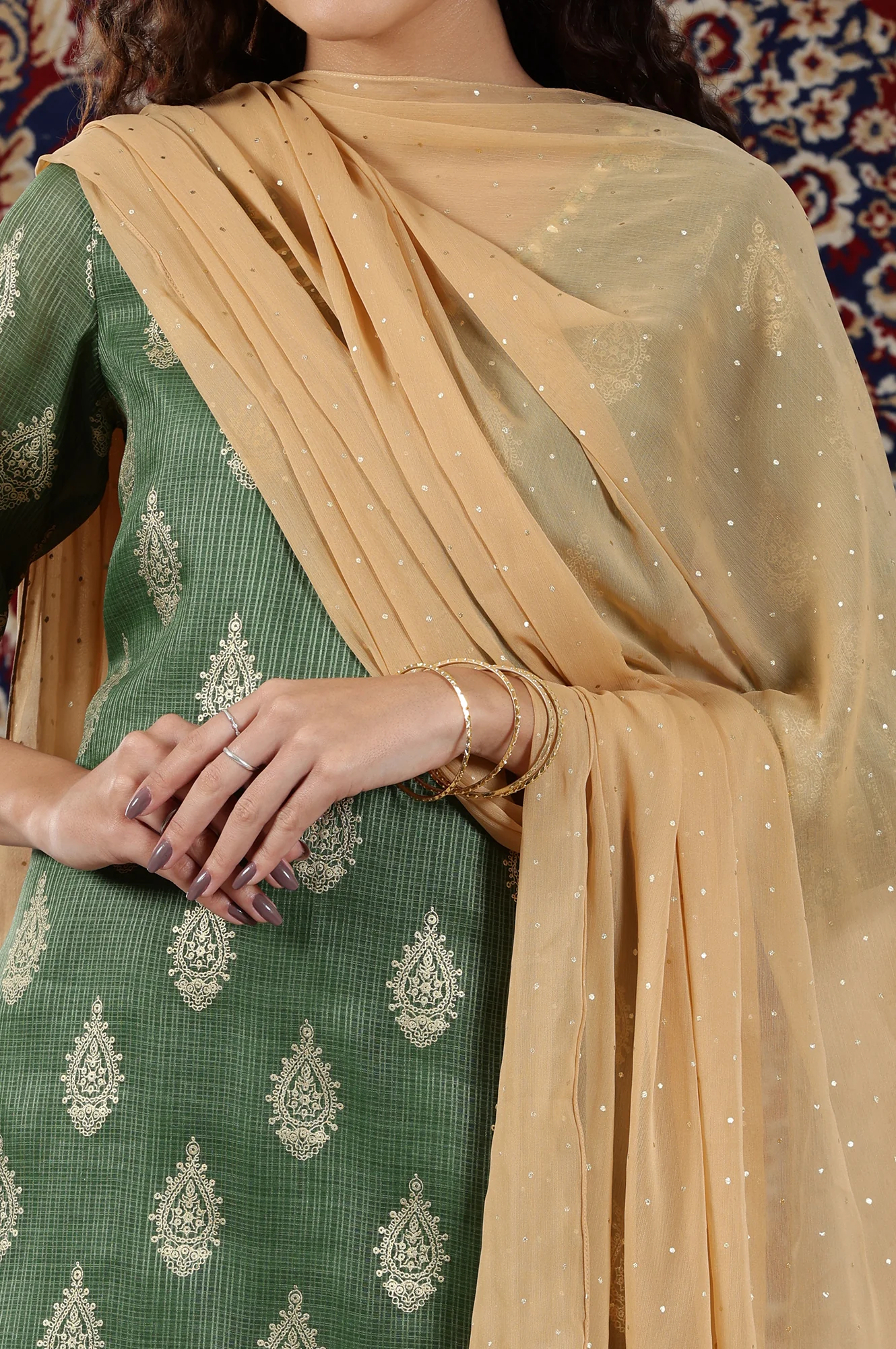 DESCRIPTION Fabric Detail: 100% Cotton Fabric: Print Width: 44 to 45 inches Length: 2.5 meters Ethnicity: Indian Ethnic Care: Hand Wash