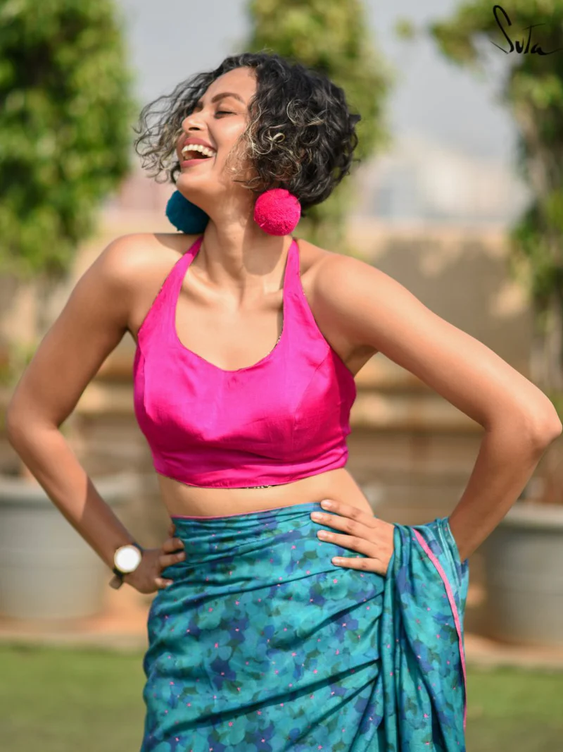 Product Type: Blouse Type: Padded Fabric: Handloom chanderi silk and Viscose Blouse Length:  0.38 m (38.10 cm) Neckline: Halter Strap Wash care: Dry Wash