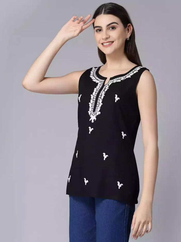 Home Short Kurtis Laiba Black Sleeveless Short Kurti