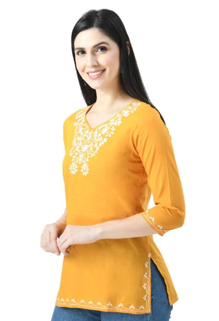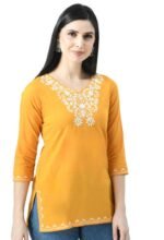 Home Short Kurtis Mustard Yellow Resham Work Short Kurti