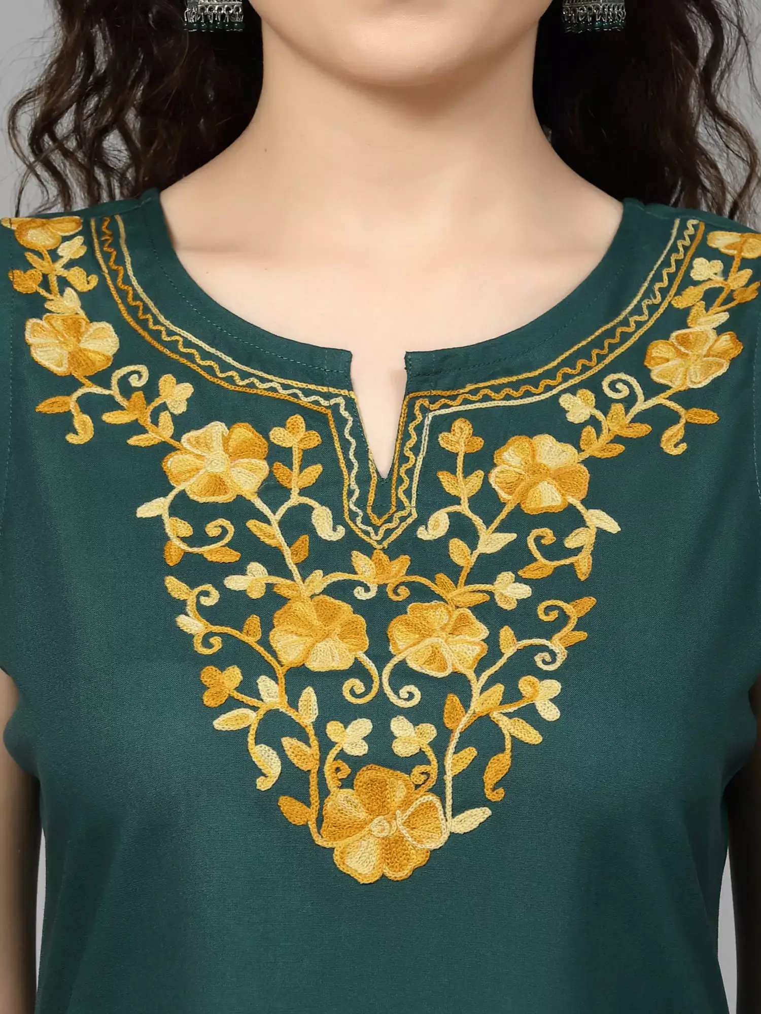- Embroidery: Aari work using mustard Cotton Thread
