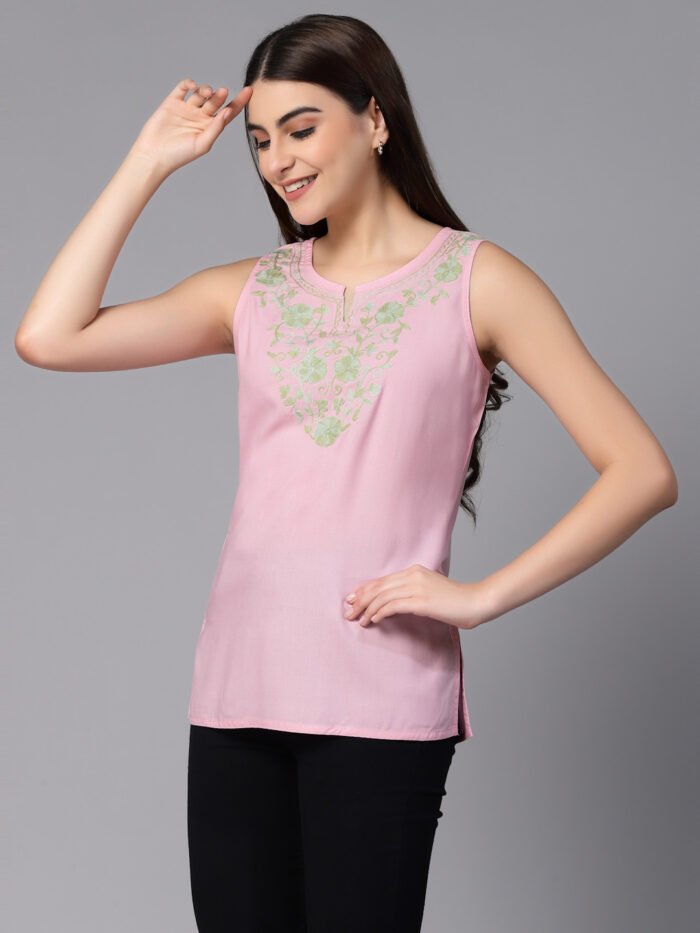 Nadia Kashmiri Light Pink Sleeveless Kurti