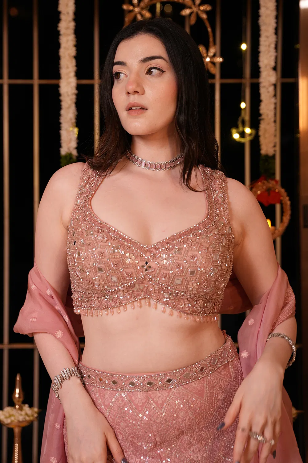 PINK FIT TO FLARE PALAZZO PANT SET AND A HAND EMBROIDERED BLOUSE and DUPATTA