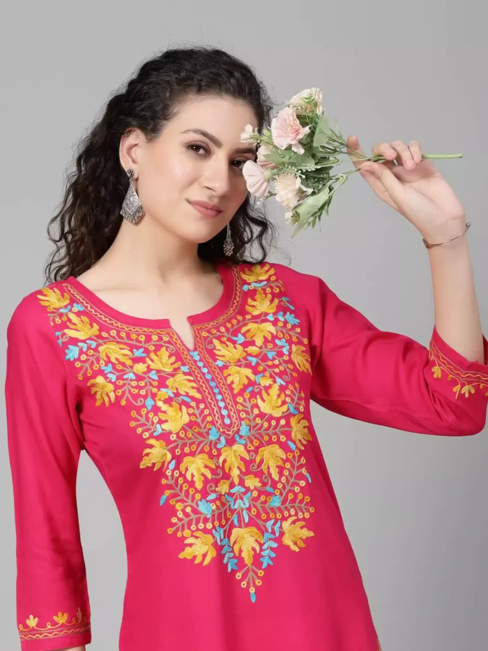 Look ethereal in this Aari work Kurti, freshly crafted in the lightness and comfy feel of cotton.