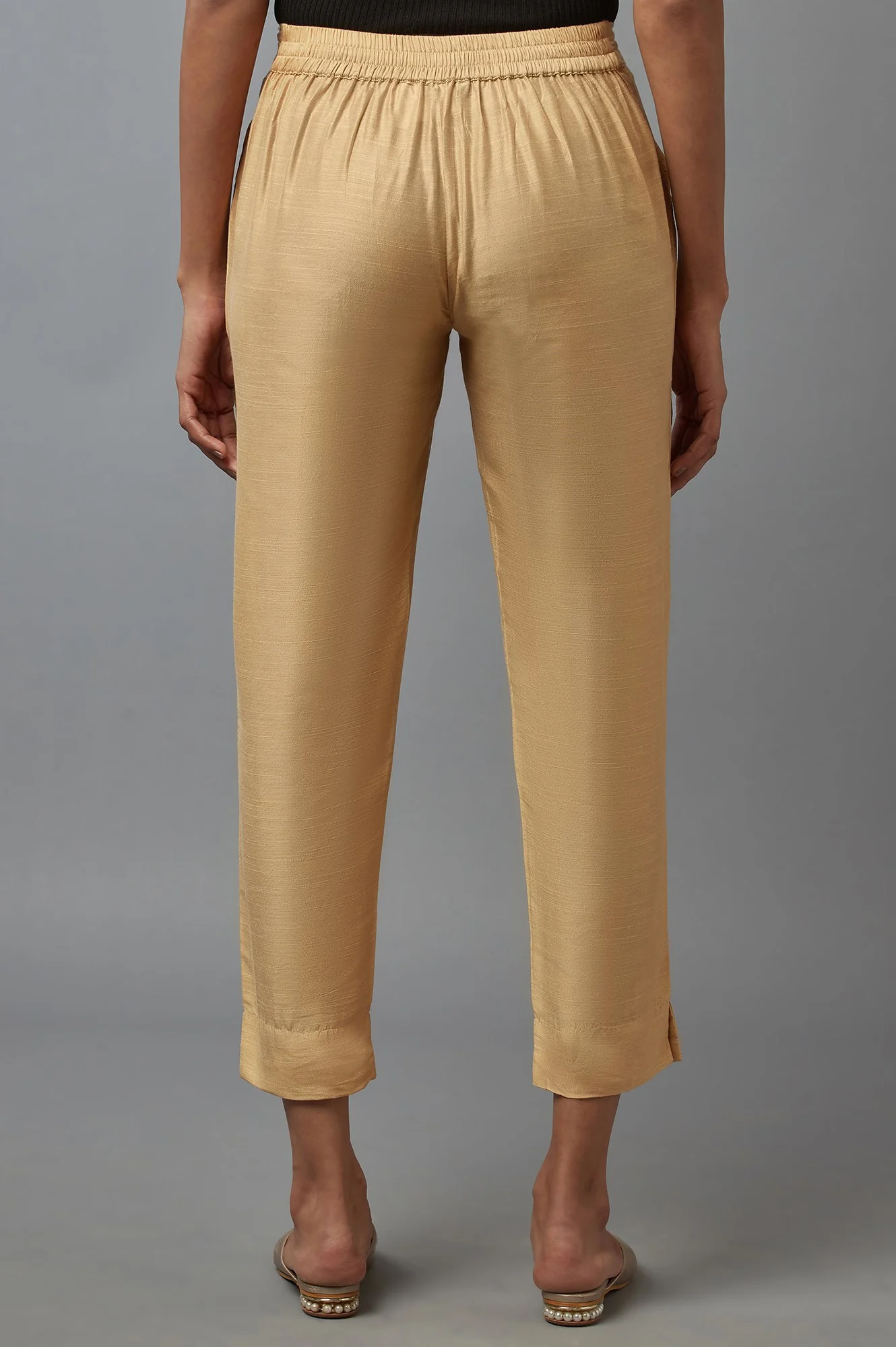 Regular Fit Solid Straight Fit Woven Trousers With Elasticated Waistband
