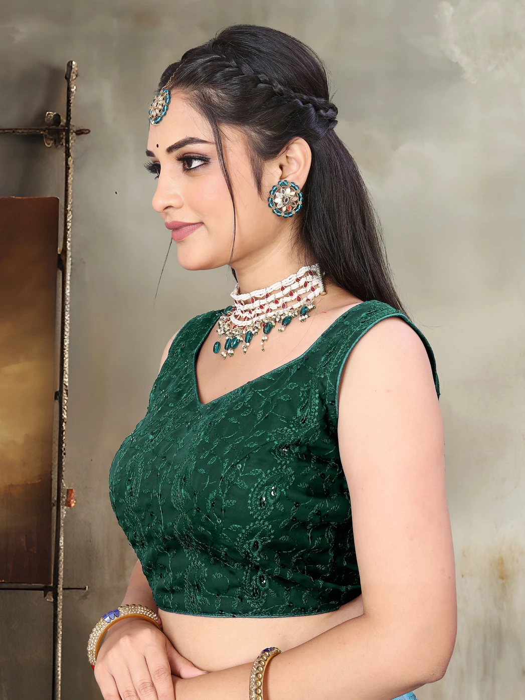 Georgette sleeveless embroidered readymade blouse. Madefrom premium quality fabric. This blouse is extremely comfortable and a great choice for any season or festive season. This blouse has high-quality fabric; you can wear itwith a solid coloured saree. Sizes are from -30 to 36, if thesize seems a little smaller, then you can get the fitting done asper your requirement, a margin is given for that.