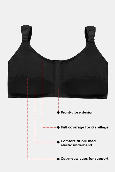 - Front closure for ease of wearing and removing