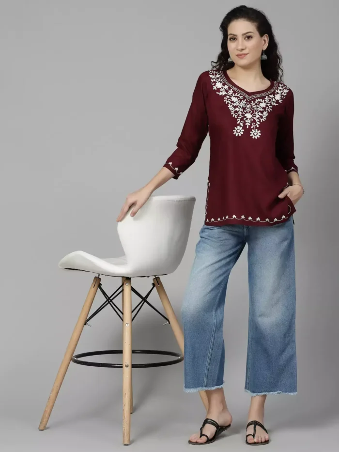 Look ethereal in this Aari work Kurti, freshly crafted in the lightness and comfy feel of cotton.
