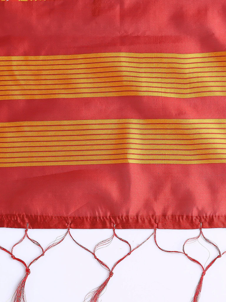 Add a touch of elegance to your wardrobe with this exquisite piece of beautiful Banarasi Silk Dupatta. Swathed with elegant Patola style weaving all over, this classic stunner is a must in your ethnic collection.