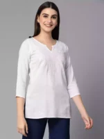 Look ethereal in this Aari work Kurti, freshly crafted in the lightness and comfy feel of cotton.